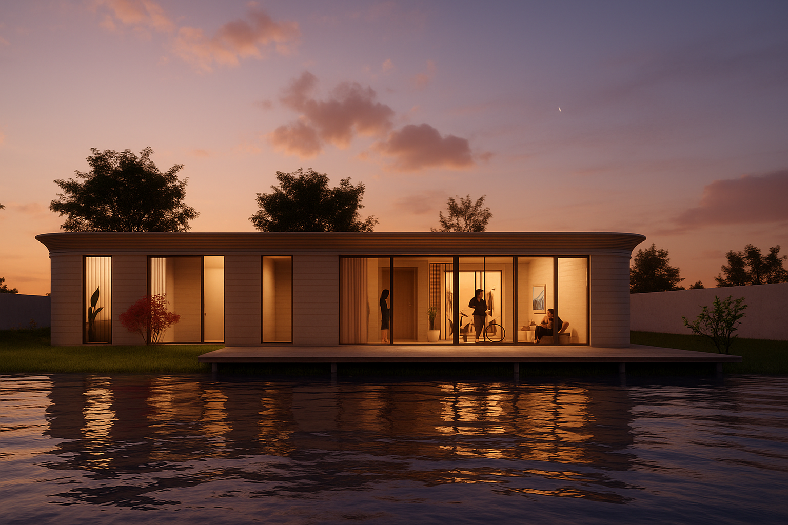 We are silva.builders. Pioneers in the construction industry, specialized in bio-based 3D-printed villas and pavillions. Fastly produced, flexible, and affordable. Our spaces are designed to be aesthetically pleasing & luxurious as well as CO2-negative, recyclable and ultra low energy consumptive.